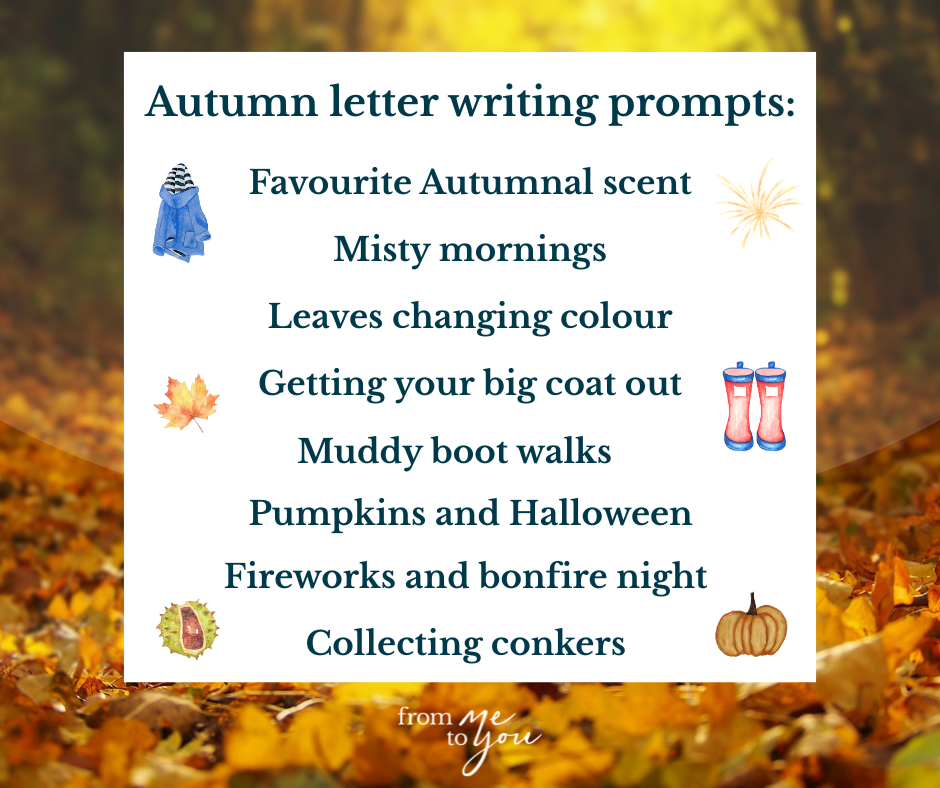 If you fancy picking up a pen and paper straight away, but are not sure where to start… these Autumnal letter writing prompts, below, are a great way to get going.