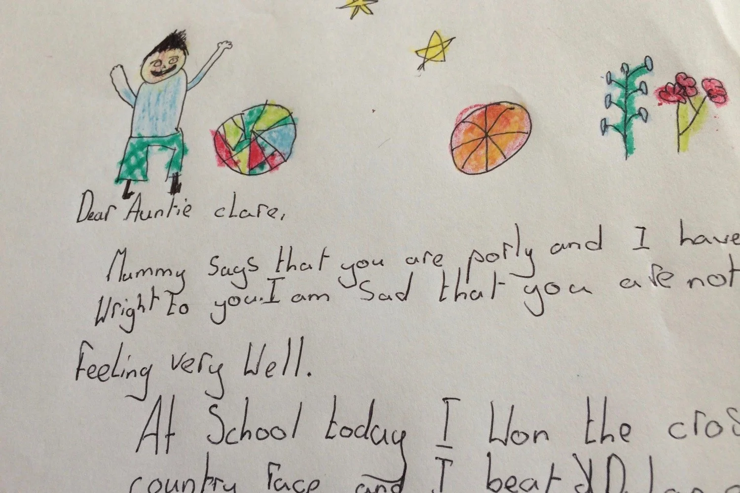 Mummy says that you are poorly and I have to write to you. I’m sad that you are not feeling very well.